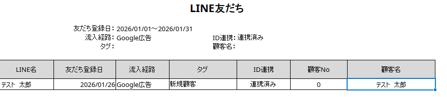 | 友だち登録日(一覧) | 友だち追加された日にち |