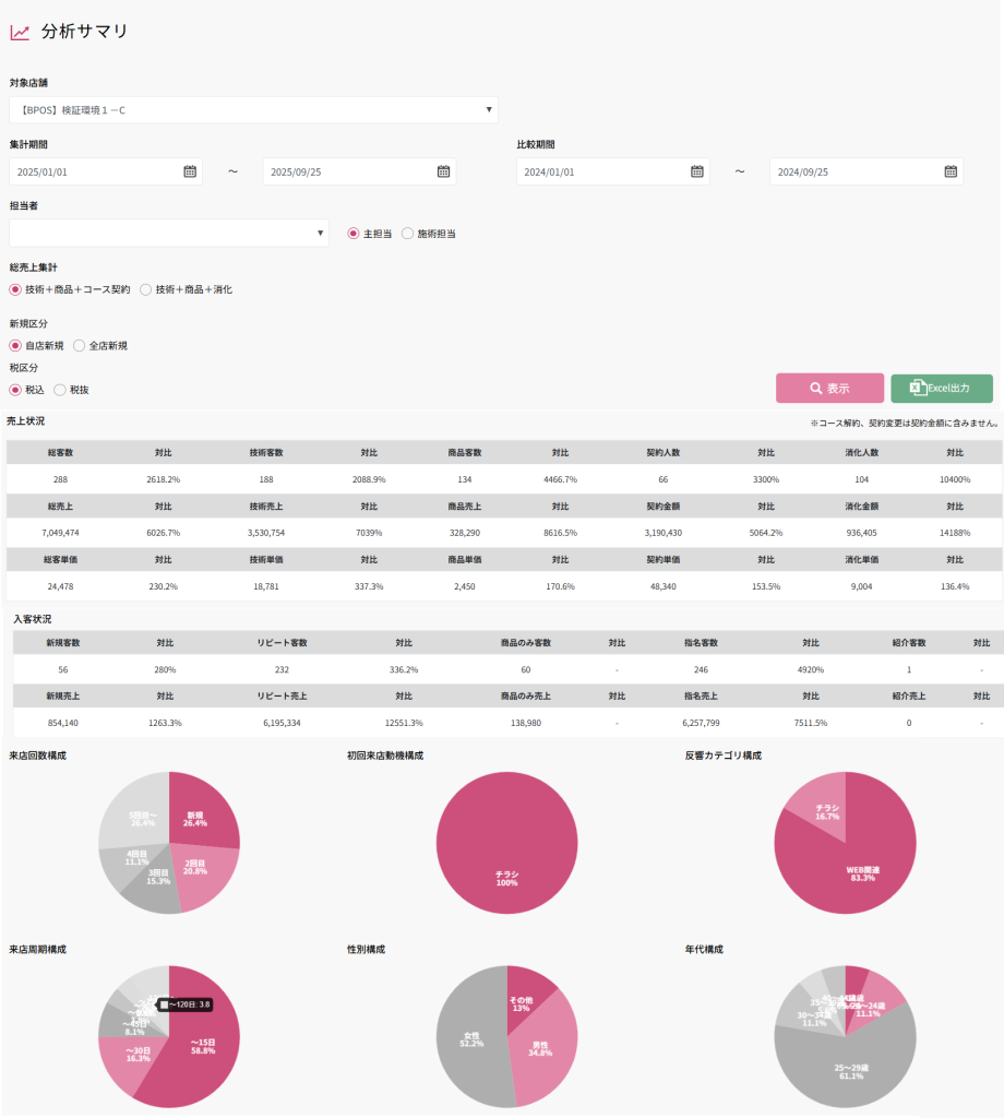 | 指名売上 | 指名利用による売上実績と対象期間との比較 |