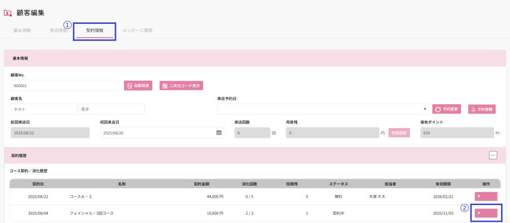 3.顧客名をクリックすると「顧客編集」画面が表示されます。