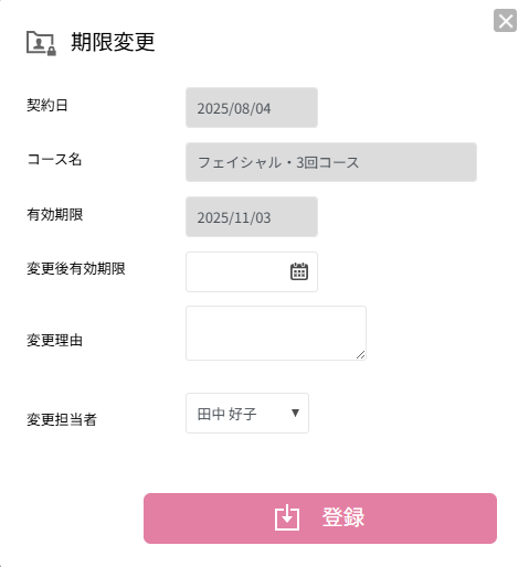 7.「変更後有効期限」に変更後の期限を選択し、「変更理由」「変更担当者」を入力します。