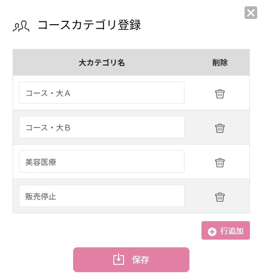5.[登録ボタン]をクリックしてコースカテゴリ名が登録されます。