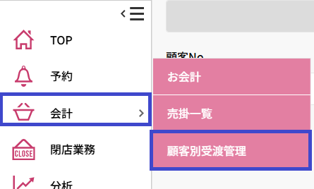 - 表示されるサブメニューの中から 「顧客別受渡管理」 をクリックします。