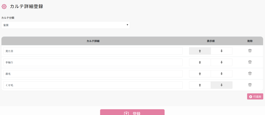 2.カルテ詳細を入力し、[登録]ボタンをクリックします。
