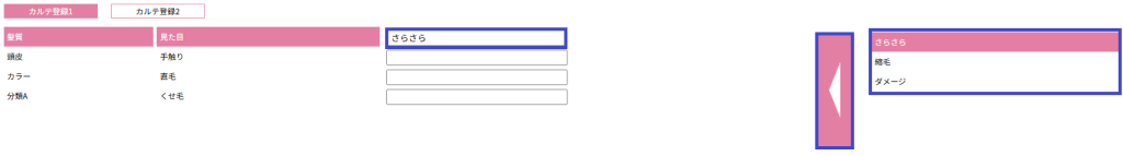 ※カルテを入力する際、[◀]ボタンをクリックしていただくと、文字を入力せずにフォームに入力することが可能です。タブレットなど端末使用する際に便利な機能です。