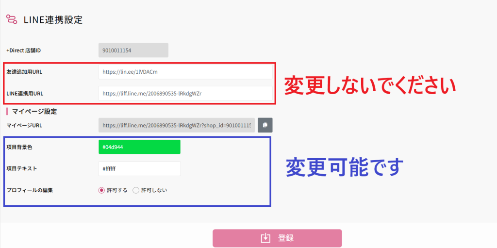 注意:友達追加用URLとLINE連携用URLは、お客様側では触らないでください。