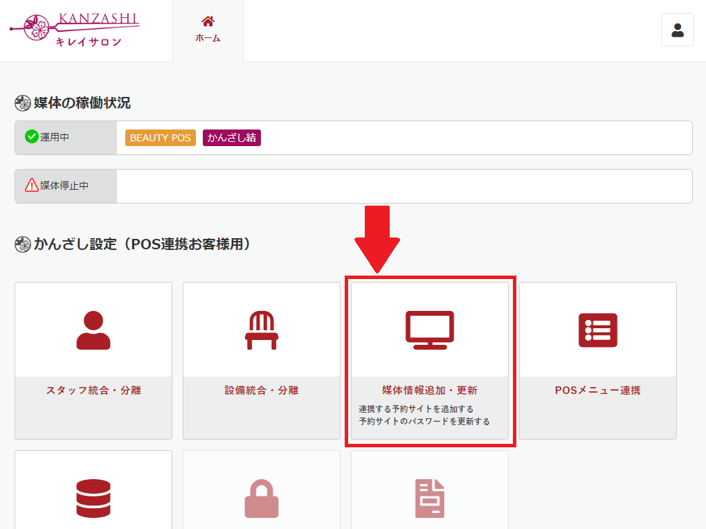 連携済みの媒体でパスワードを変更したら「かんざし画面」でも、同様に変更をお願いします。