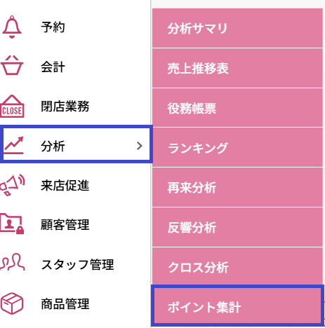 このページでは、ポイント集計について詳しく説明しています。この機能は顧客のポイント利用状況を把握し、ポイントプログラムの運用効果を測定するための分析ツールです。