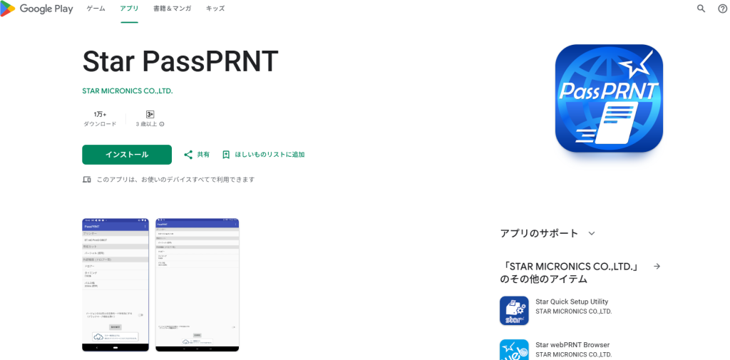 ビューティポスからレシートをプリントするために、「Star PassPRNT」アプリをインストールしなければいけません。