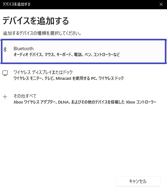 3.デバイスを追加する画面が表示されたら、「Bluetooth」をクリックします。