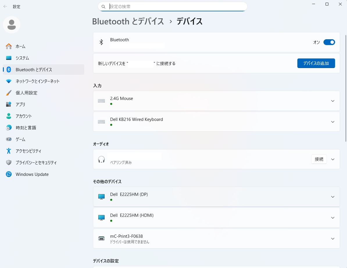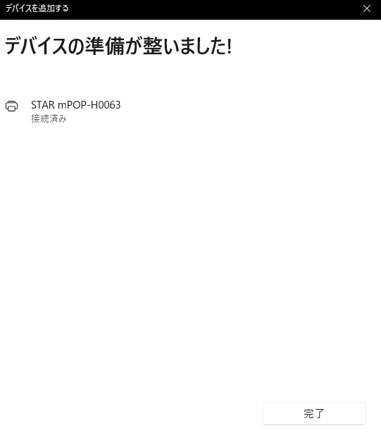デバイスの追加を行うときに、はじめは「ペアリング済み」と表示されますが、しばらくたつと「ドライバーは使用できません」と表示されますが、問題はありません。