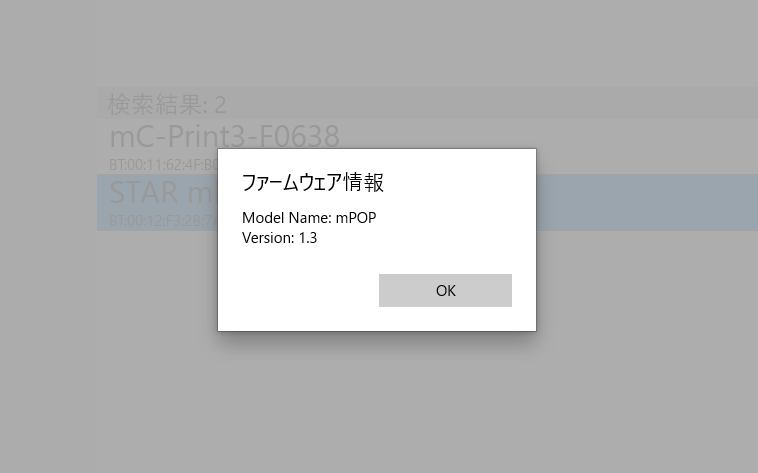 4.ファームウェア情報の画面が表示されたら、[OK]をクリックし完了です。