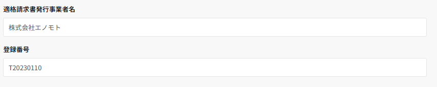 6.「適格請求書発行事業者名」と「登録番号」を入力します