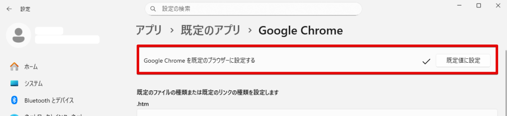 以下URLを参考にして、既定のブラウザーにGoogle Chromeを設定してください。