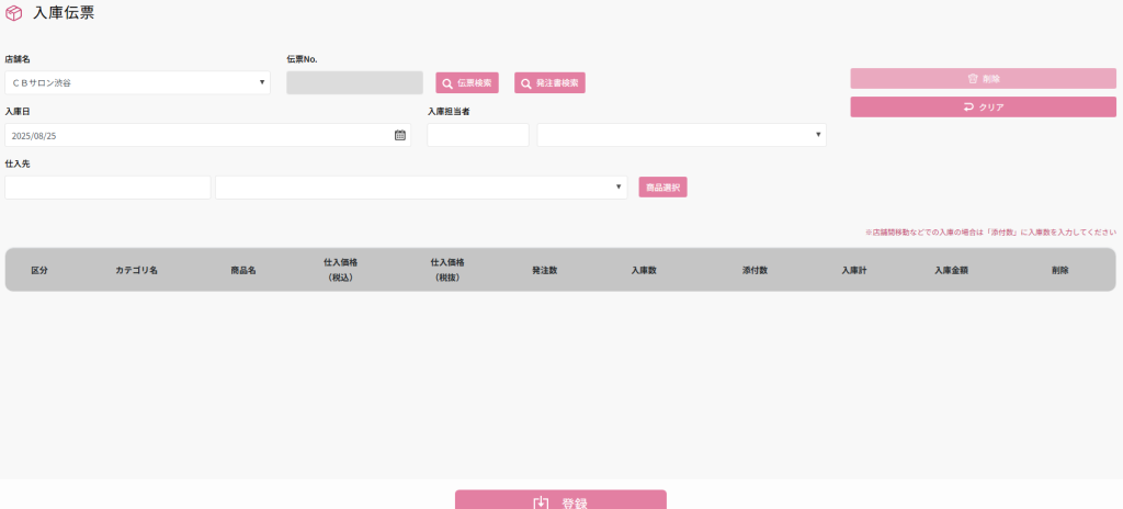 | [登録]ボタン | 入庫データを登録 |