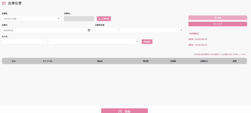 | [登録]ボタン | 出庫データを登録 |