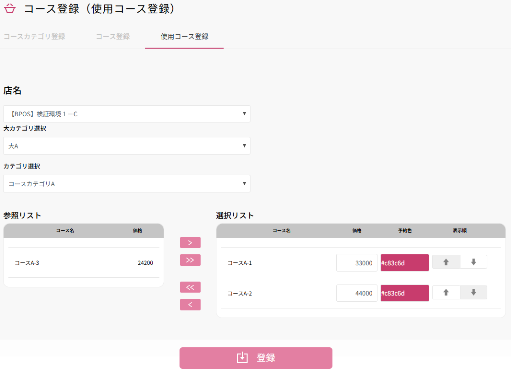 | 選択リスト | 店舗で使用するコース一覧を表示 |