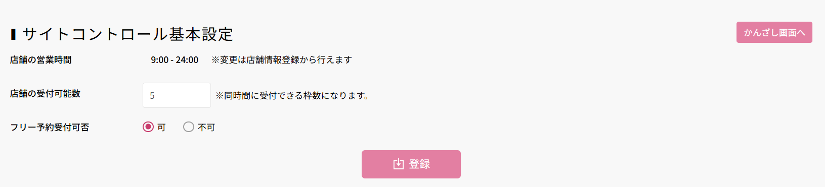 | 店舗の営業時間 | 店舗の営業時間を設定します。変更は店舗情報登録画面から可能 |