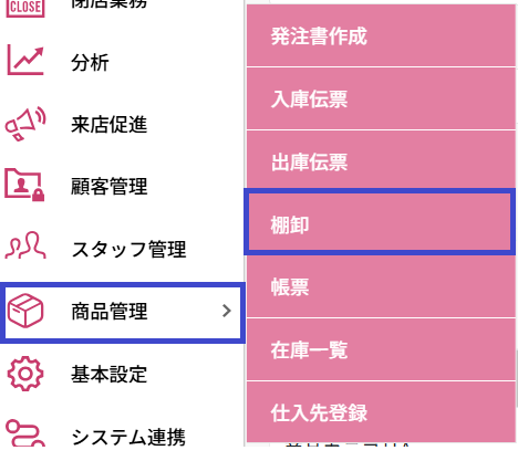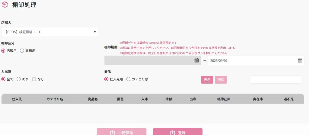 | 棚卸区分 | 店販用・業務用(ラジオボタン選択) |