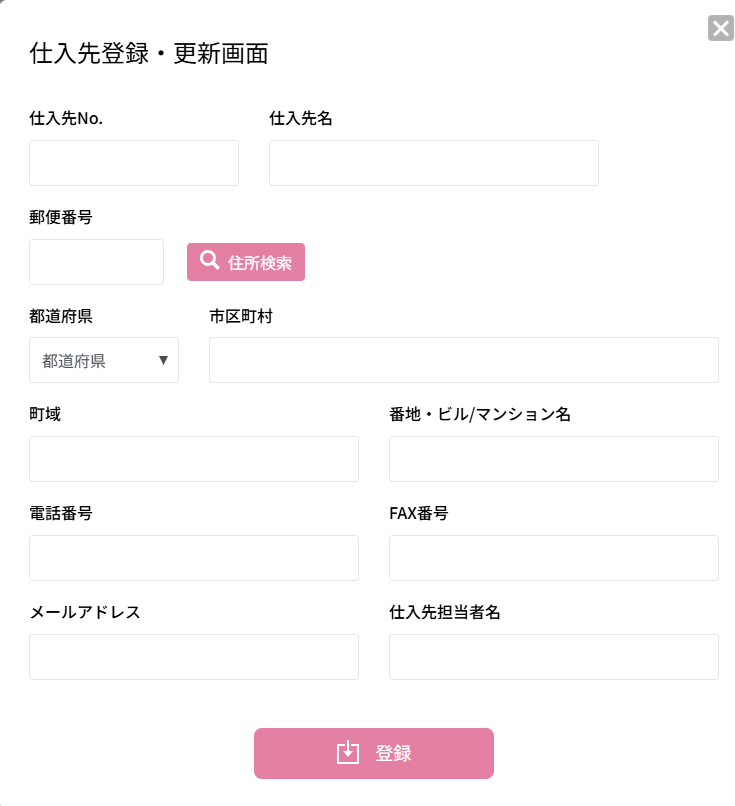 2.「仕入先登録・更新画面」が表示されるので、編集したい箇所を編集します